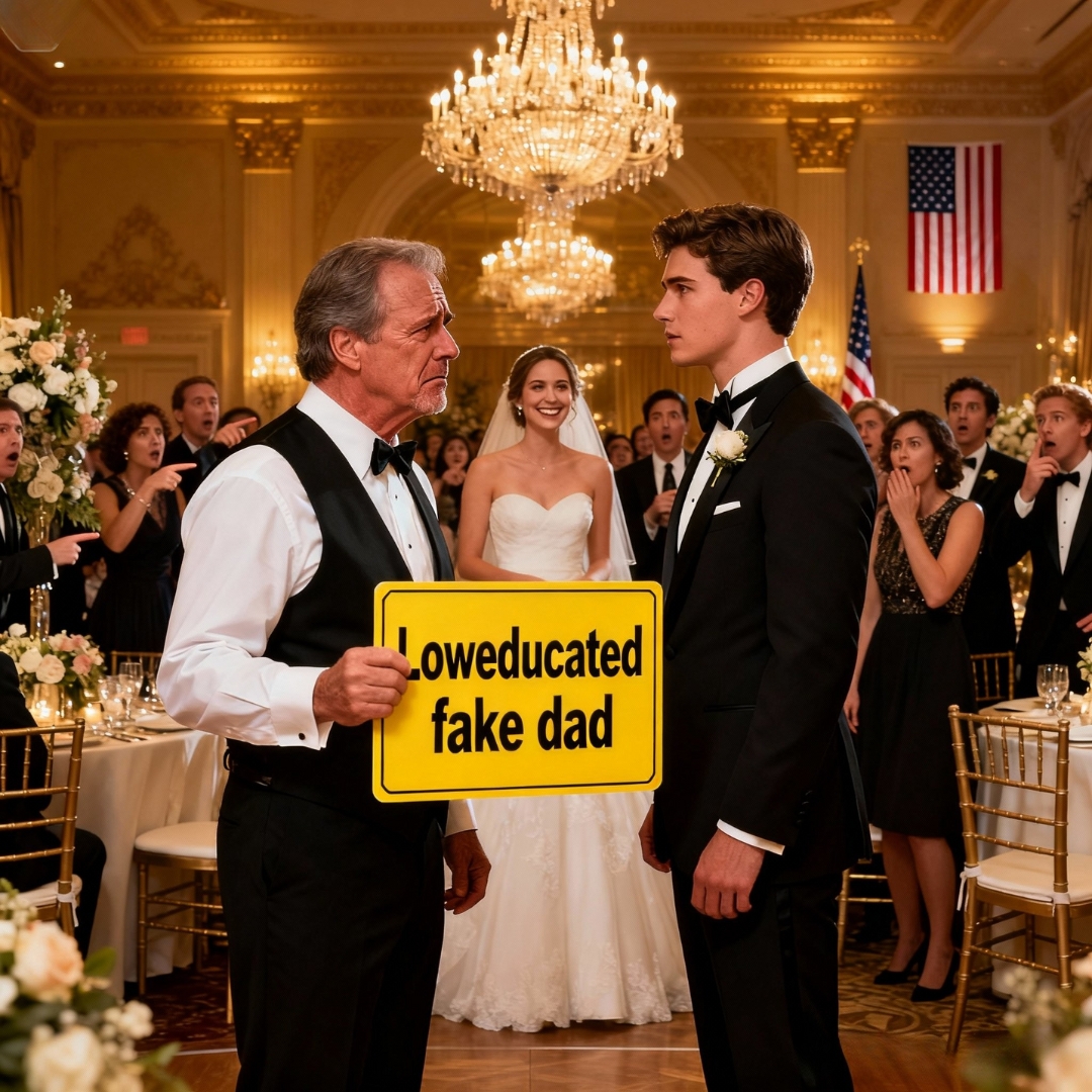 The laugh broke like glass under a stiletto. It sliced through the clink of crystal and the swing of a jazz trio in a Manhattan ballroom where the chandeliers looked like upside-down constellations. On the family table, beneath a card embossed Father of the Groom in gold, someone had scrawled a second line in glittering cursive: low-educated fake dad.