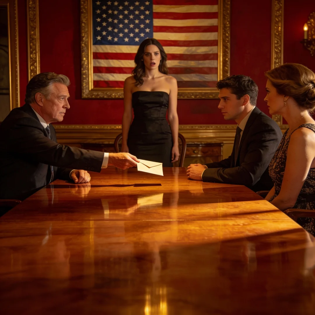 The envelope didn’t slide so much as skate—sleek across varnished mahogany, a blade finding ice. It made a sound rooms remember, the soft, certain sigh that says a decision is already walking toward you. Richard Hastings pushed it, then sat back like a man who expects applause. Candles drew points of light in the crystal; the china reflected a life built to shimmer.