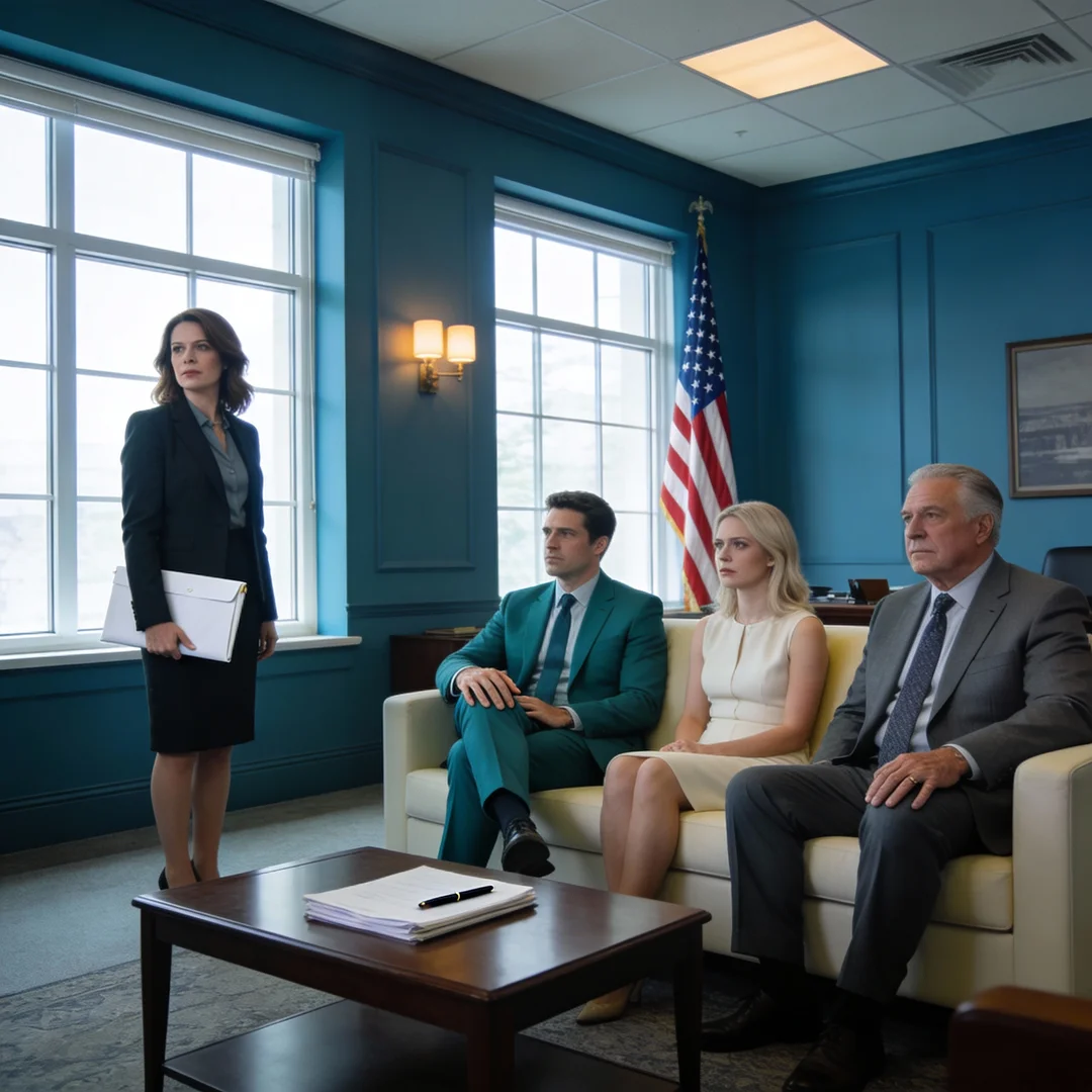 Ryan sat on the couch, legs crossed, posture that said ownership. Lisa beside him, purse perched, jaw tight, eyes bright in the way of someone who wanted a front-row seat.
