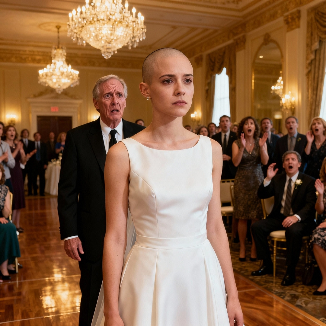 I stood in the chapel doorway with Virginia sunlight pouring in behind me, my shaved head catching the stained‑glass glow and throwing soft colors across the pews. Every face turned. Gasps ragged the air. My father, front row in a navy suit, went pale—real fear in his eyes for the first time in my life. The silence snapped clean. And in that frozen beat, I knew: today wasn’t the day he ruined me. Today was the day I took myself back.