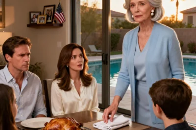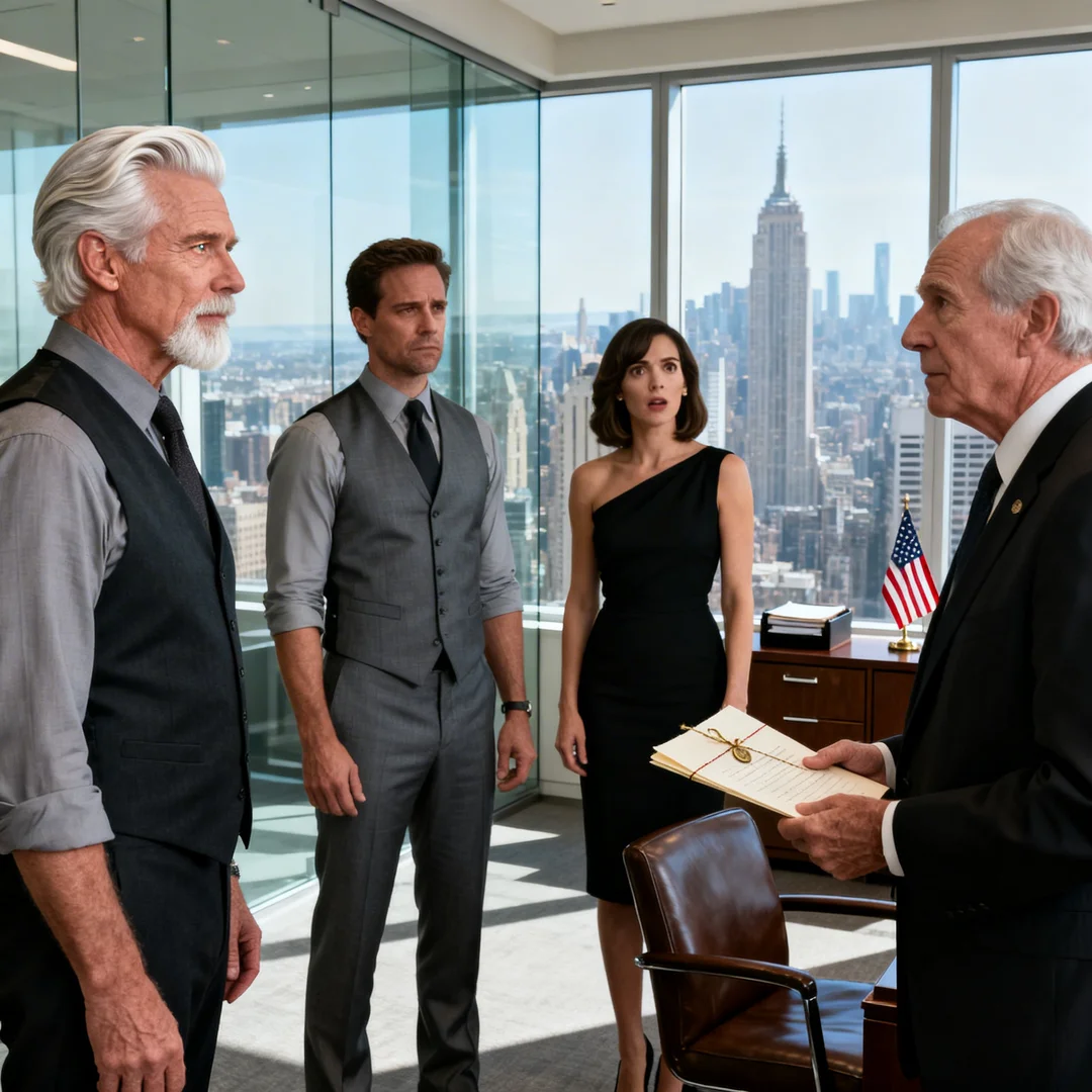 Daniel at the head of the table in a gray suit that fit him perfectly, scrolling his phone like the meeting was an inconvenience he had chosen to endure. Sarah at his right in a black dress, legs crossed, sunglasses pushed up in her hair like she had mistaken a probate meeting for a rooftop lunch. Catherine next to her with her little gold cross and pressed lipstick, the kind of woman who could make charity sound condescending. Pamela farther down, quiet, serious, both hands folded on the table. And at the end, standing with legal ceremony beside a stack of folders, Attorney Arthur Stone.