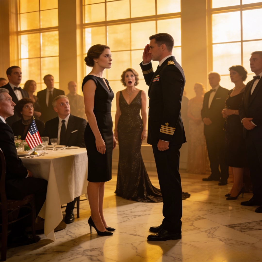 Then he rendered a salute so crisp it looked like it belonged on a parade ground, not beside a champagne tower.