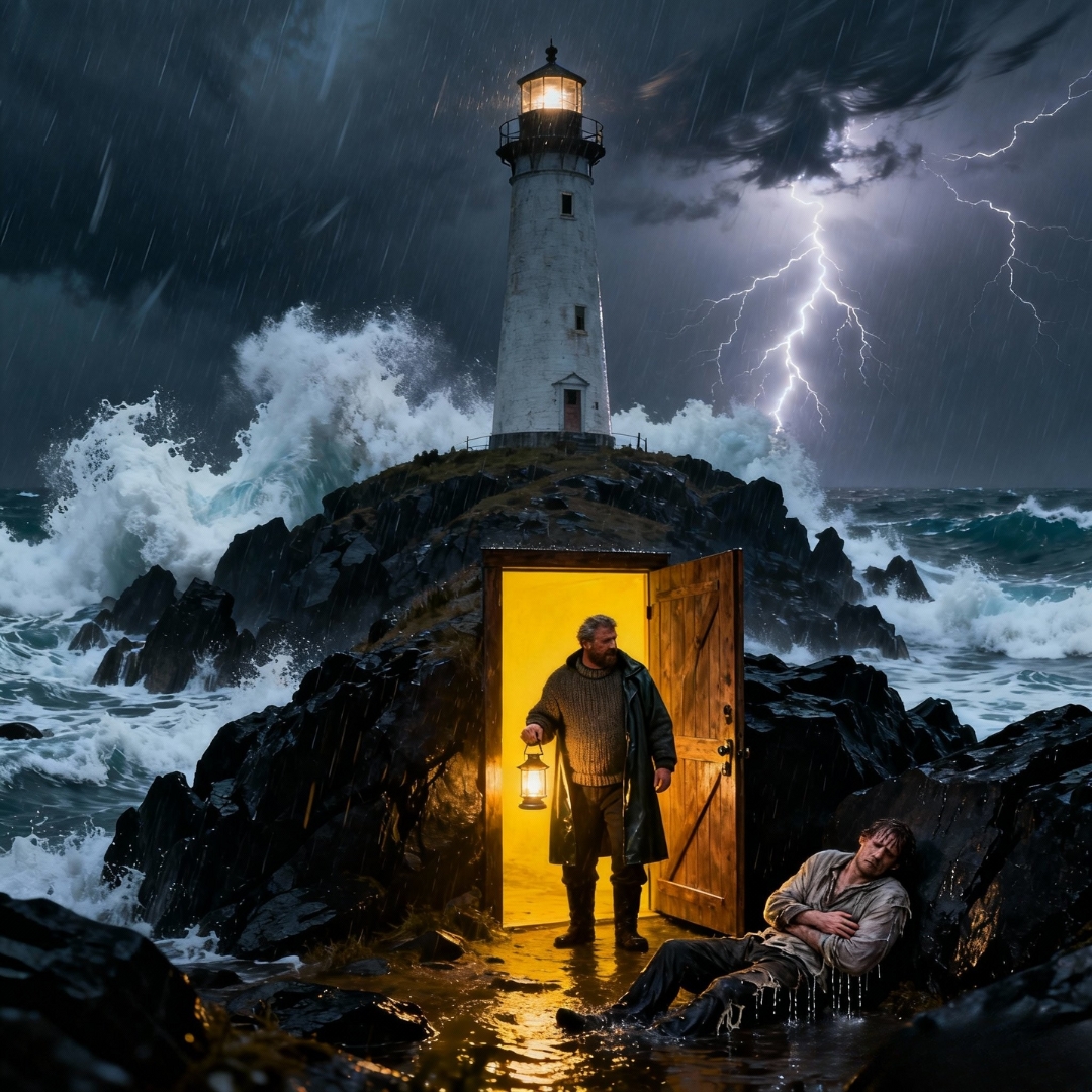 The knock came between flashes of lightning—three hard blows on the steel door at the base of the tower. For a second, I thought I imagined it. No one should’ve been within ten miles of this rock. The U.S. Coast Guard had been blasting marine weather warnings over Channel 16 for two days. Every boat in Maine that wasn’t insane or suicidal was tied up somewhere safe.