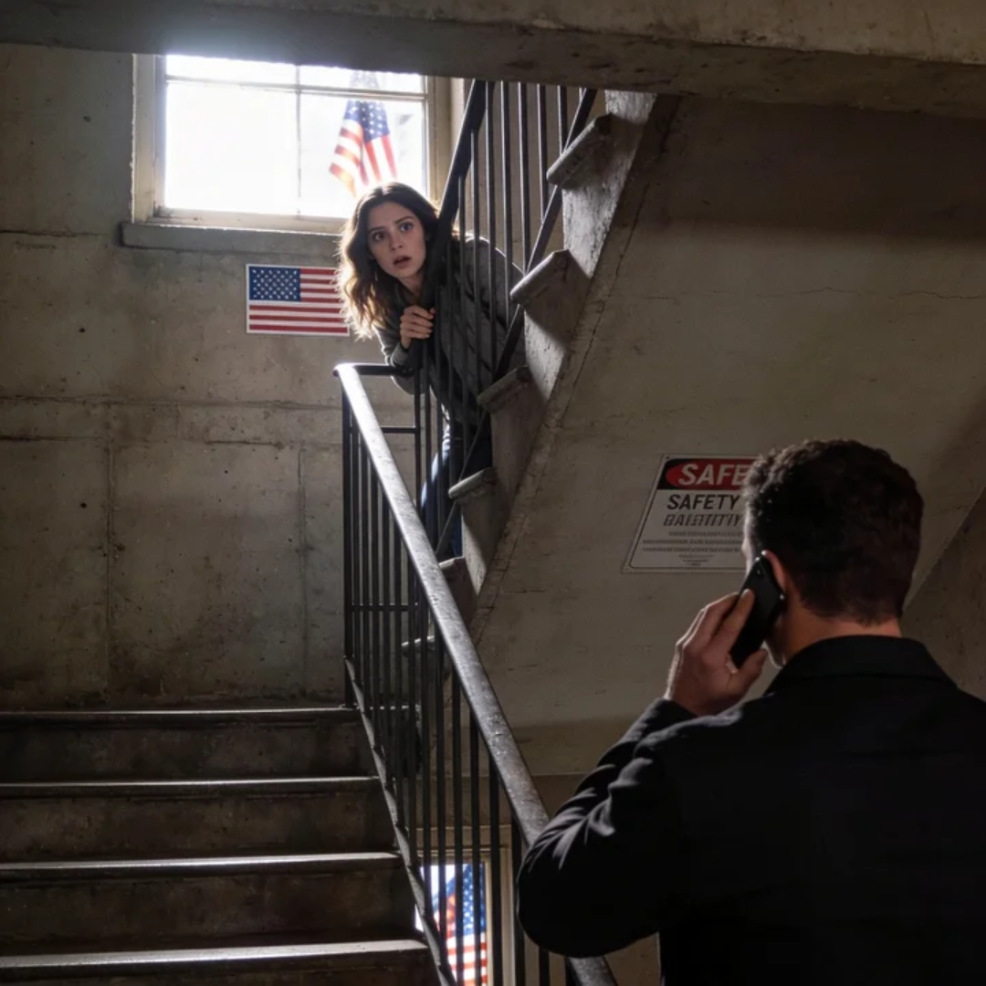 Rebecca’s fingers curled around the metal railing so hard it stung. Her pulse thudded in her ears, loud enough she feared he’d hear it. The stairwell suddenly felt like a sealed box.