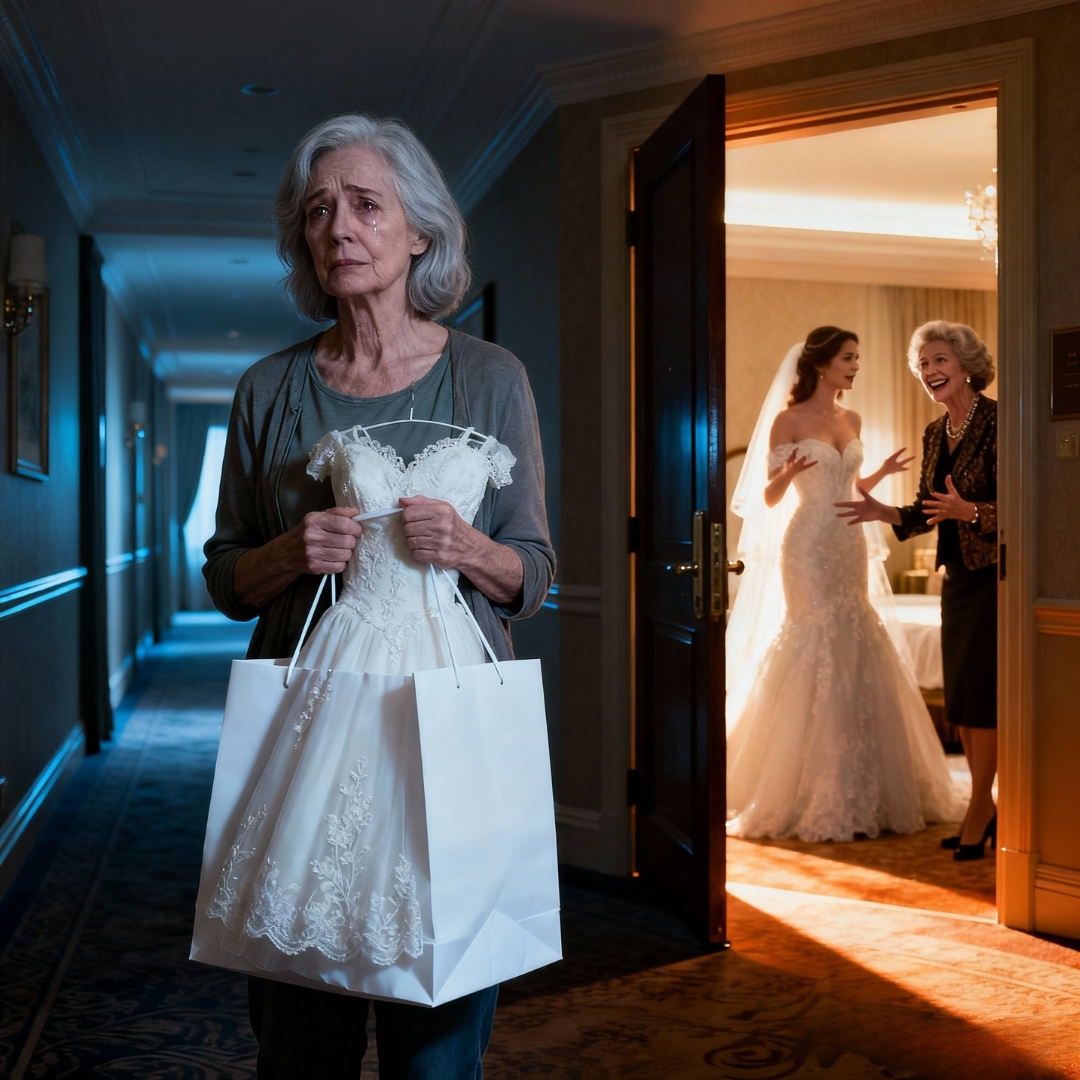 She pressed the elevator button and rode down twelve stories in silence, the dress cradled in her arms like a sleeping child nobody in that suite wanted to claim.