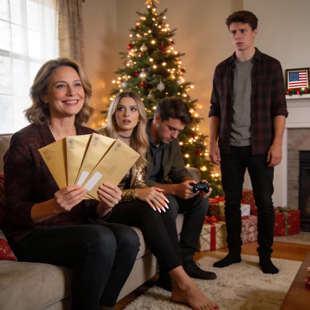 My mom held them like she was handing out destiny—thick cream paper, fancy travel logos, the kind of presentation that screams we’re a family that does big things. The living room in suburban Ohio smelled like cinnamon and pine cleaner. Madison had her phone already angled for content, Tyler had one earbud in like Christmas morning was background noise, and my dad was posted up on the recliner with that familiar, quiet smile he wore whenever he planned to let Mom run the show.