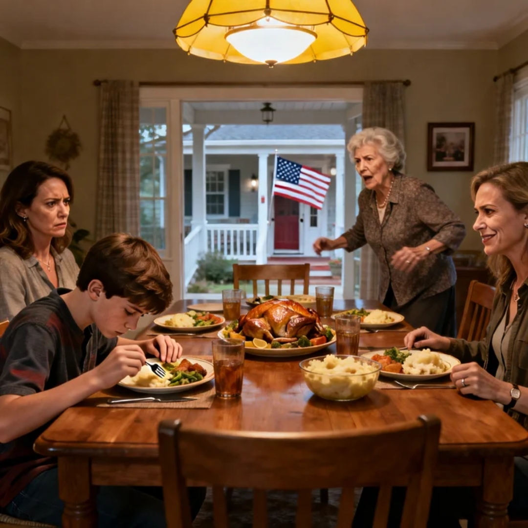 The dining room light flickered once—just once—like the house itself was warning me, and then my sister smiled across my table and aimed her cruelty at my son like it was a party trick.