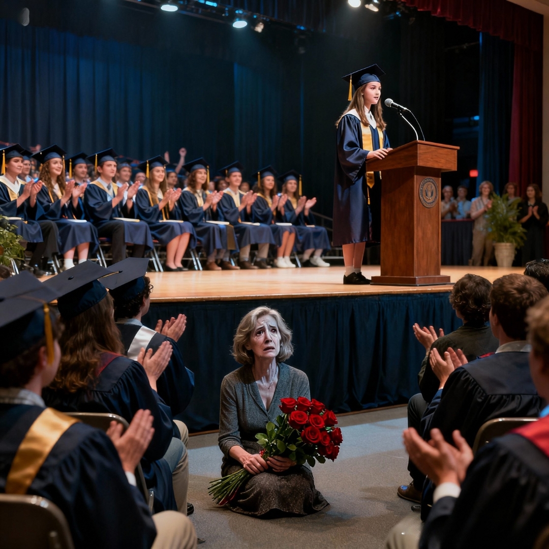 The moment my own daughter pointed straight at me from the graduation stage and called me a pretender in front of a packed American high school gym, the air turned to concrete in my lungs.