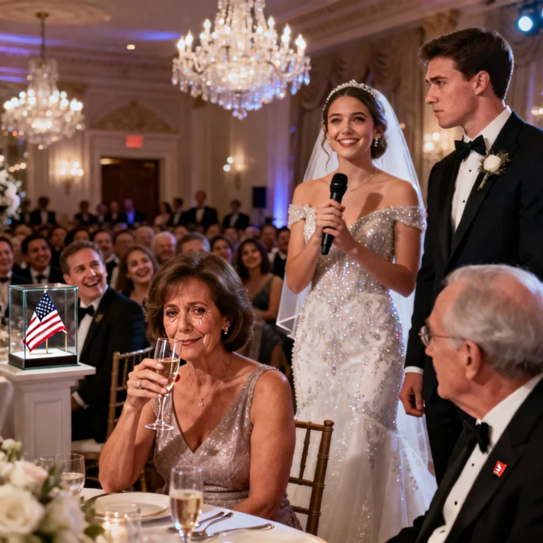 The chandelier light hit the champagne like a spotlight—cold, sharp, unforgiving—right as my daughter lifted the microphone and smiled the kind of smile that cuts.