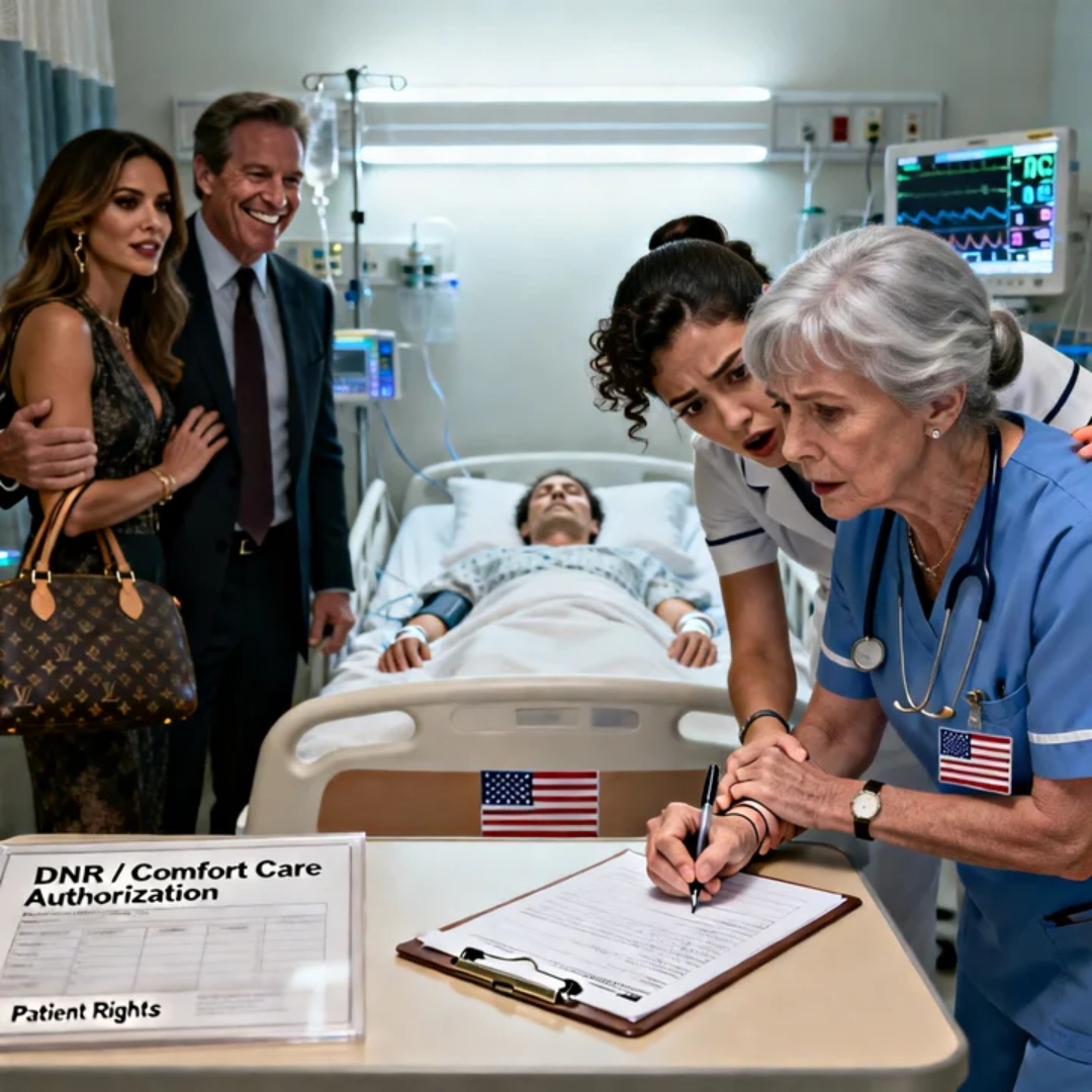 A man in an expensive suit who looked like he belonged in a downtown boardroom, not a hospital ICU. His eyes were red, but not swollen. His grief looked… practiced. Like an actor who’d rehearsed the moment in a mirror. His lips held a faint curve—a smile he couldn’t quite kill—while he pointed at the papers in front of me.