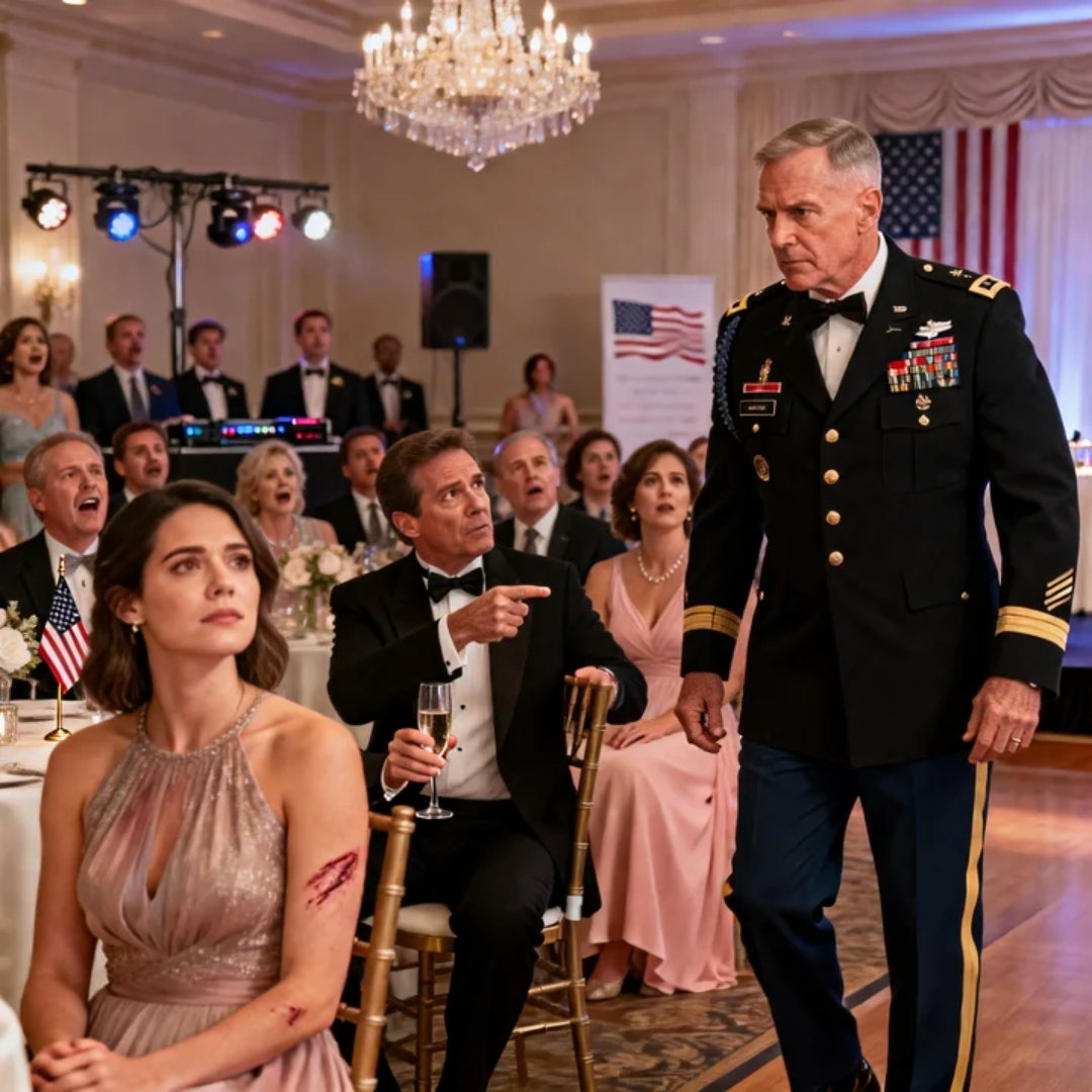 The laughter hit before the sound fully registered as human, a sharp metallic crack bouncing off crystal and polished wood, the kind of laughter that doesn’t rise from joy but from permission, from the collective comfort of knowing someone else is the target and not you, and it sliced through the reception hall like broken glass, and for a split second my body reacted before my mind did, shoulders tightening, breath locking halfway in, the old instinct flaring to disappear, to make myself smaller, quieter, safer, even as my eyes lifted and found my uncle Richard standing beneath the soft white lights of a high-end hotel ballroom somewhere off the eastern seaboard of the United States, the kind of place with American flags discreetly placed near the entrance and a framed photo of the city skyline in the lobby, champagne flute raised, suit perfectly tailored, wealth and confidence clinging to him like cologne, his finger extended openly, unapologetically, pointing at the pale, uneven burn scars running along my bare arm, scars I had chosen not to hide tonight, scars that caught the light and reflected it back without shame, and around him my family laughed with him, not nervously, not accidentally, but fully, faces open, eyes bright with shared condescension, a chorus rehearsed over decades, and I felt the familiar mask slide into place, calm settling over me like armor, the kind forged from years of learning that reacting only feeds them, that silence can sometimes be the only control you have left, and yet even in that practiced stillness I felt something new, a pressure building, because two hours earlier when I’d walked into that hall, heels clicking softly against marble, I had done so with intention, with resolve, choosing the sleeveless dress deliberately, a simple, elegant cut that framed my shoulders and left my arms bare, not because I wanted attention, but because I was finished hiding, finished allowing my body to be edited for other people’s comfort, finished pretending the story written into my skin was something to be ashamed of, though shame, I had learned, was a family heirloom passed down with stubborn insistence, and my mother Carol had confirmed it the moment she saw me, rushing over with that familiar tight smile, silk shawl already in her hands like a reflex, draping it over my shoulders with trembling fingers while whispering that we didn’t want to make the other guests uncomfortable, dear, peace mattered more than fairness in her world, appearances more than truth, and then Richard arrived, not with warmth or curiosity but with a sigh so condescending it felt like judgment made audible, eyes flicking immediately to my scars before asking if I was still between jobs, suggesting maybe this little accident would finally teach me to be more careful, and I nodded, as I always did, because arguing was pointless, because to him I was a clumsy niece who’d had a mishap, a cautionary tale to be laughed at, and nothing I said would penetrate that narrative, especially not the truth, a truth made of fire and metal and screaming alarms and choices that couldn’t be undone, and the moment came during the toasts, when champagne loosened tongues and emboldened cruelty, Richard flushed and smiling as he raised his glass to the bride, my cousin, beautiful and glowing, before his eyes landed on me at the family table, that glint flashing, the warning I knew too well, and he boomed my name, inviting the entire room to turn and look, delivering his punchline about not being able to handle a simple campfire, laughter exploding again, louder this time, sanctioned, public, my father laughing too, my aunts and cousins joining in, not just a joke but confirmation, reinforcement of the story they had all agreed upon, that I was reckless, a disappointment, marked by my own foolishness, and Richard basked in it, unaware that he had just told that joke in front of the one man in the room who knew exactly what that fire had been, and to understand why the laughter died so completely, why silence fell like a dropped curtain, you have to understand the two lives I had been living, because to my family the story began and ended in a sterile hospital room in the United States, monitors beeping softly, antiseptic thick in the air, my father Robert standing beside the bed but not quite looking at me, speaking to the doctor as if I were damaged property, asking if the scarring would be permanent, worrying aloud about my future prospects, and I lay there wrapped in bandages feeling something cold and hollow open inside me, because I had just walked out of an inferno and his first thought was optics, and Richard’s visit had been worse, no flowers, no concern, just printed job listings for safe, sensible office positions, announcing my adventure was clearly over, that it was time to be realistic, and even my cousin had called to ask if I could find a dress that covered things up for the wedding so it wouldn’t be a distraction, because to them it was an accident, an embarrassment to manage, a narrative to control, but they were wrong, because it didn’t start in a hospital, it started under the deafening roar of jet engines at Bram Airfield, an American base far from banquet halls, where I wasn’t poor Annie but Sergeant Anna Petrova, Army firefighter, the call coming in just after midnight, fuel depot fire, routine until it wasn’t, intel missing the secondary munitions cache less than fifty yards away, a situation we called Operation Tuesday because everything that could go wrong always did, jet fuel burning white-hot, liquid fire consuming oxygen itself, us fighting containment until the explosion threw me off my feet, sound vanishing, screams filling the comms, the north wall collapsing, soldiers trapped inside, including Command Sergeant Major Evans, Captain Rosttova ordering a fallback, the sensible order, the logical one, the one my family would have expected me to obey, but I heard