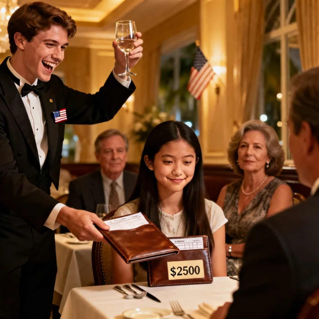 Then the server arrived, smooth as satin, and slid a leather folder in front of me like a weapon placed politely on a table.