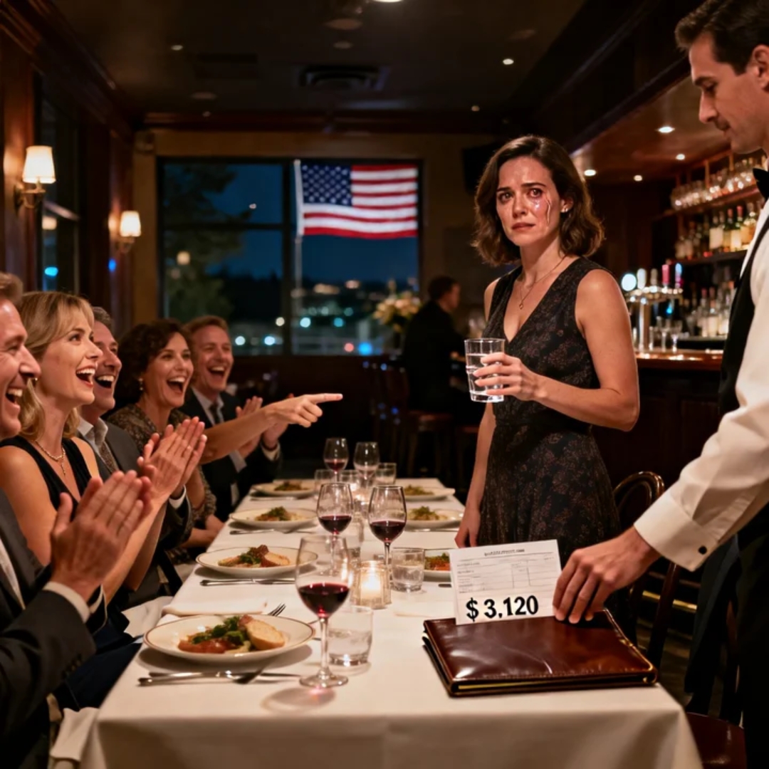 The waiter set the bill down in front of me like a judge dropping a sentence—and the entire table leaned in, hungry for the moment I would finally break.