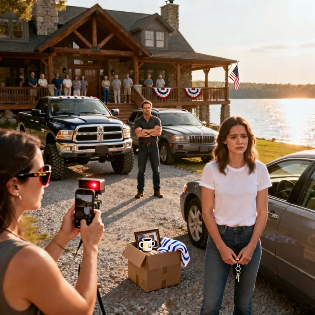 Three vehicles sat across the private road like a human wall made of steel and entitlement: my cousin Derrick’s lifted pickup, Aunt Patricia’s SUV, and my cousin Melissa’s sedan angled sideways like she’d practiced this in a parking lot.