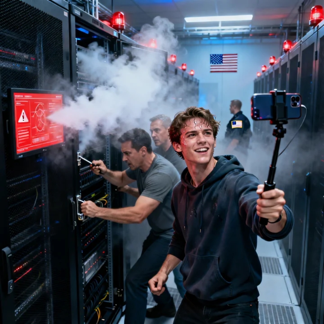 He showed red alarms flashing. Showed people prying at locked racks with screwdrivers. Showed a diagnostic screen that should never, ever be broadcast.