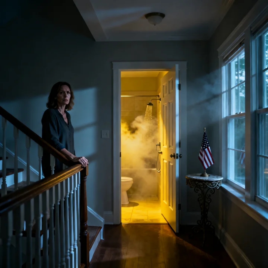 Not from the kitchen. Not from the half-bath downstairs. The sound came from upstairs—from the master bathroom, the one Daniel and I shared every day.