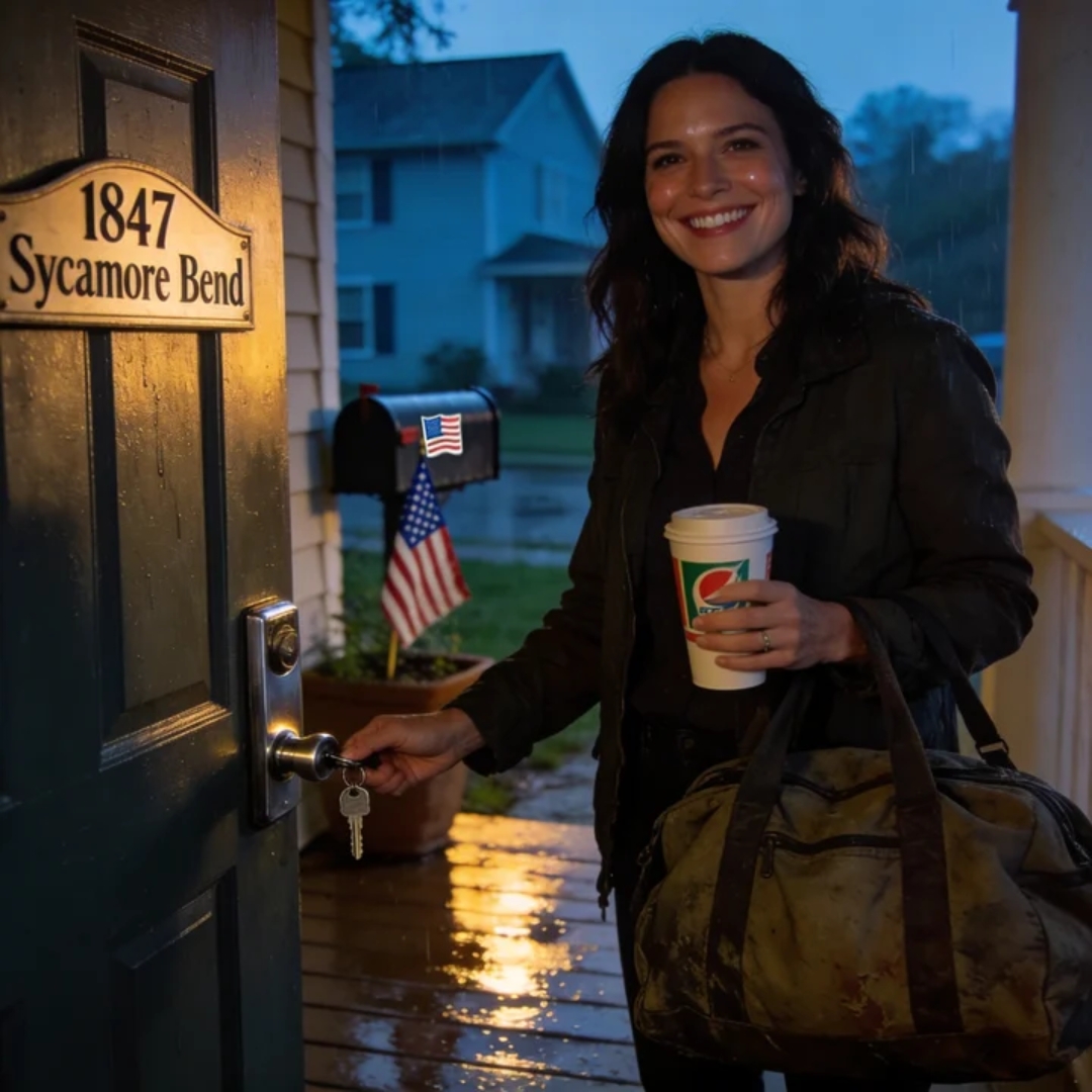 I stood on the porch at 1847 Sycamore Bend with a duffel bag cutting into my palm and a gas-station coffee turning cold against my fingers, staring at a house that looked exactly like mine—same porch light, same welcome mat, same tiny crack in the concrete step—but suddenly felt like a staged set after the actors have gone home.