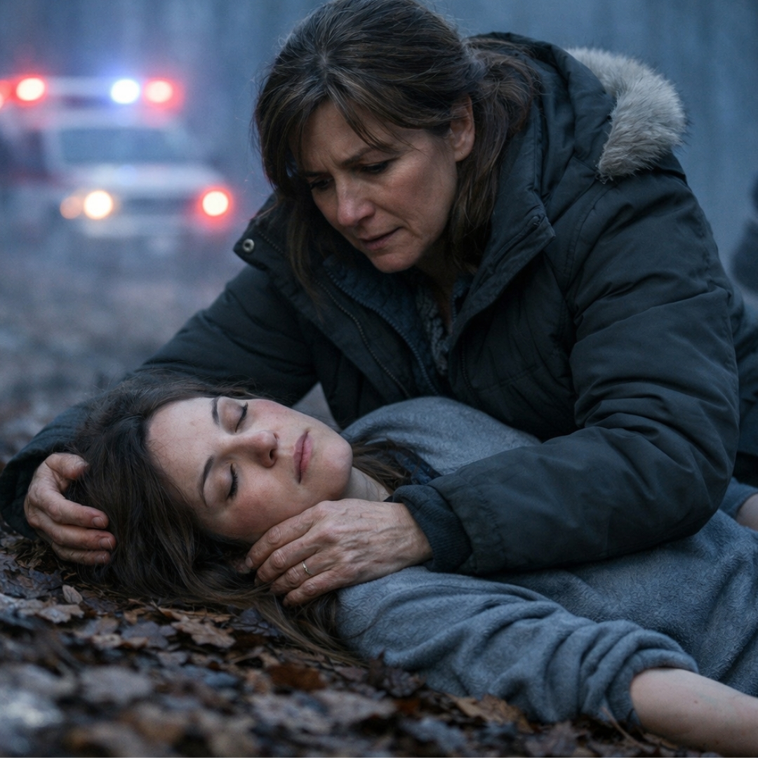 “Ma’am,” a man’s voice said, tight and rushed, like he was speaking between breaths. “I found your daughter in the woods. She’s alive… but barely.”