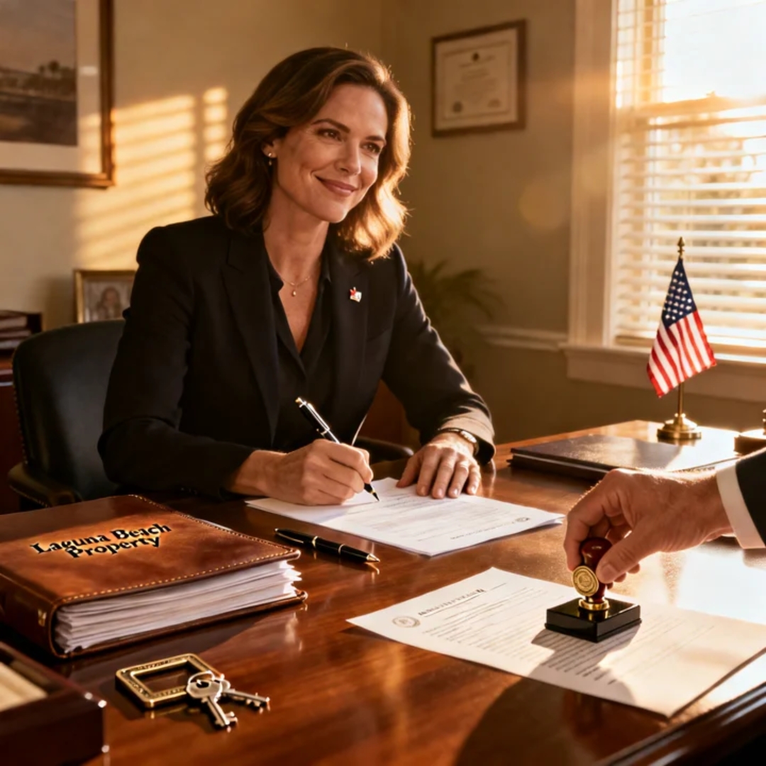 Outside the glass office windows, Los Angeles shimmered in that golden, smug afternoon light—traffic crawling on the 405, palm trees swaying like they had nothing to worry about. Inside, I sat perfectly still in a leather chair that cost more than my childhood couch, watching a stranger press my decade of sacrifice into a single red seal.