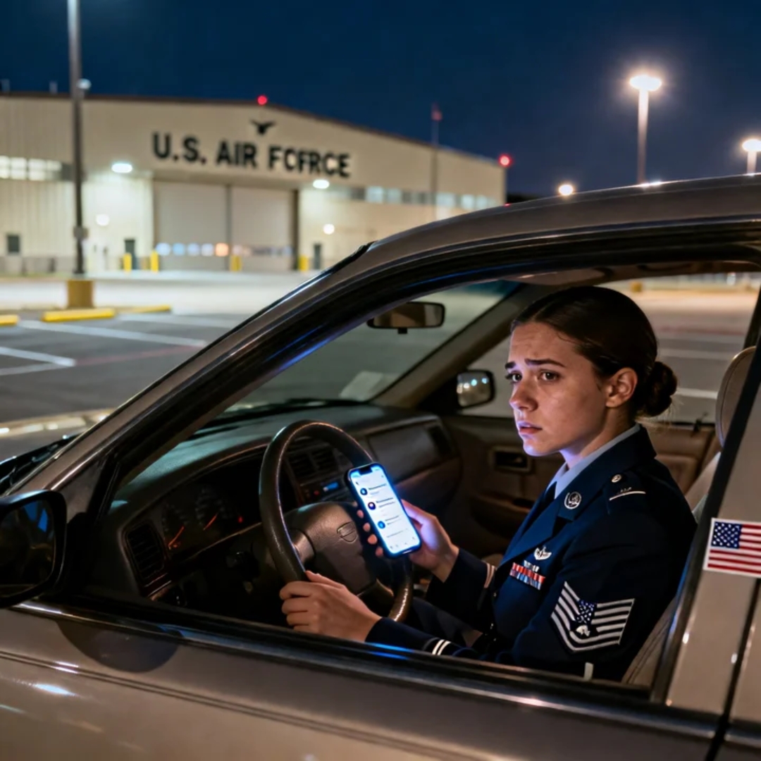 I was still in dress blues, parked under a flickering lot light outside the base gate, hands locked on the steering wheel like I could keep my life from sliding off the road if I just held tighter. The banquet applause was long over. The ribbon on my chest felt heavier now that the room was gone. I was staring straight ahead, not really seeing the windshield, when my phone buzzed.