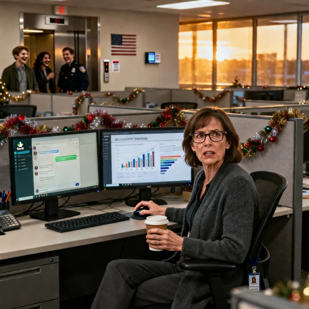 By noon, the office had the kind of manic cheer that feels like whistling in a graveyard. Someone had put holiday lights around the snack shelf. Someone else had placed little candy canes in a glass jar labeled “GRAB JOY.” I watched Braden grab three and toss them into his mouth like he was fueling a machine. Kyle wandered around in his velvet blazer again, soaking up attention, practicing that stage voice people use when they’re about to say something cruel but want it to sound like leadership.