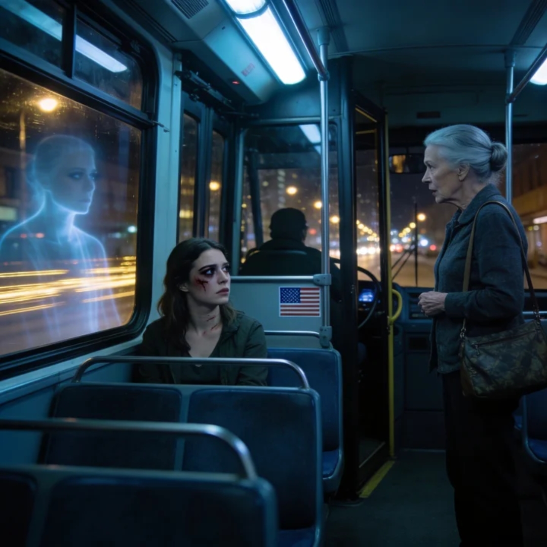 She slid into a seat halfway down the aisle and pressed her forehead against the cold window. The glass was dark enough to reflect her face, and the reflection was a stranger—hair stuck to her cheeks, mascara streaked, a bruise already rising like ink beneath the skin on her cheekbone, and the faint red marks at her throat that would deepen by morning.
