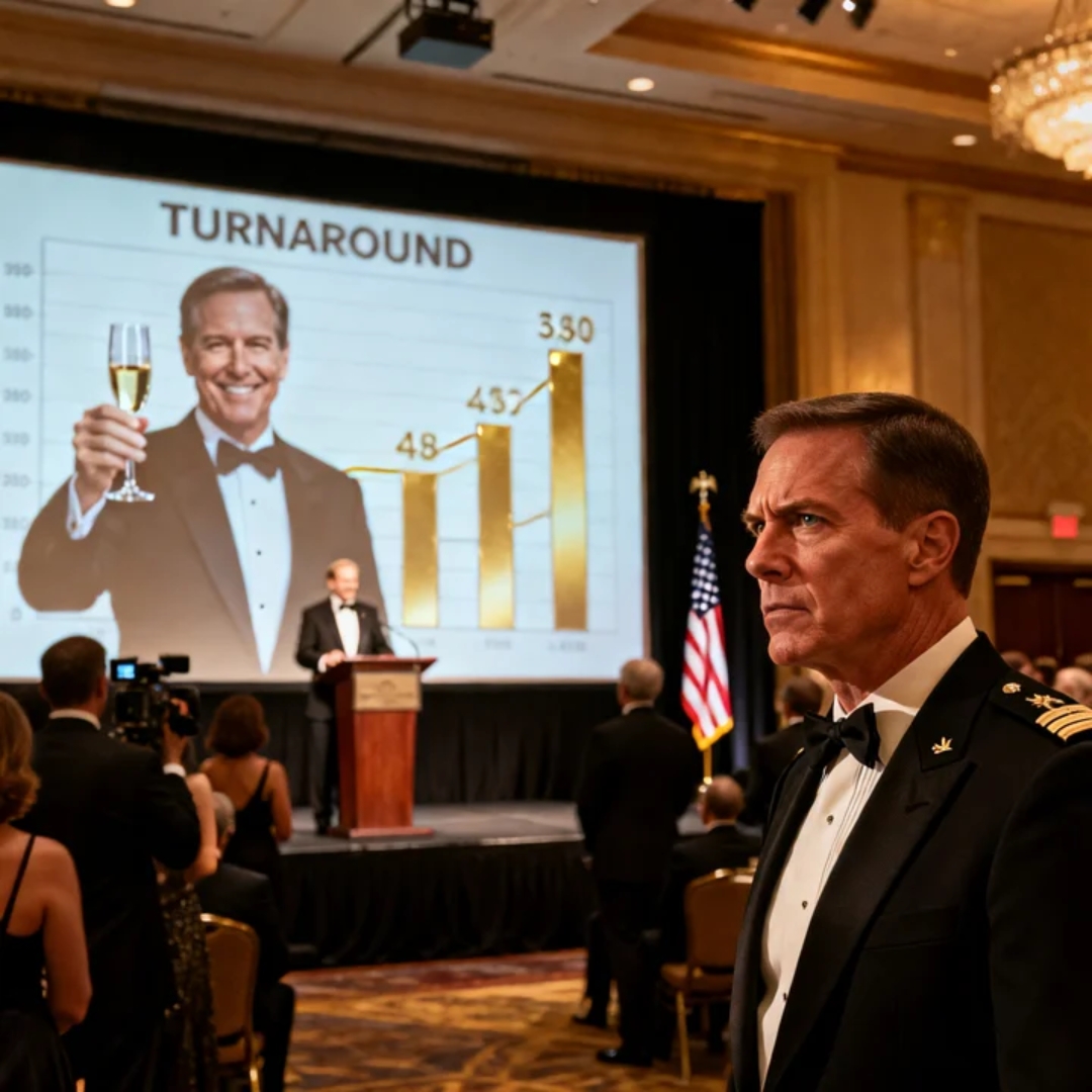 “I want to take a moment,” he said into the microphone, voice smooth as broadcast radio, “to recognize Lucas Harper for his exceptional work stabilizing our operations this year.”