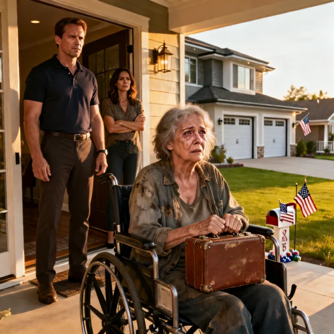 Michael took one look at me—my suitcase, my thin coat, my cramped hands, my broken hip trapped inside this chair—and his face didn’t soften.