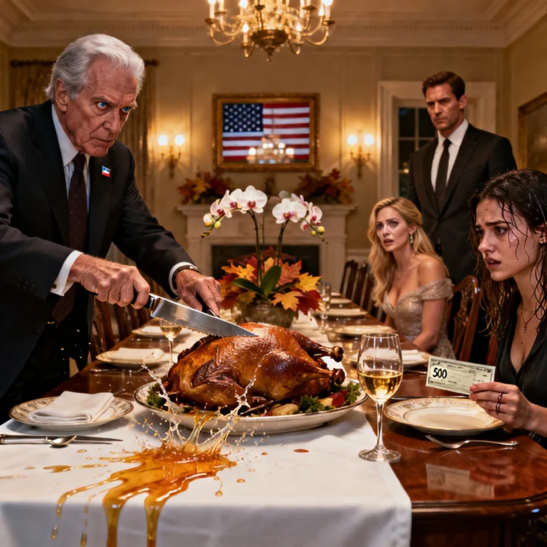 One second Earl Graham was carving through the golden skin like he’d done every Thanksgiving for as long as I could remember, the silver blade flashing under the chandelier. The next, he went still—knife hovering above the roast like time had snapped in half. He looked up at me with the kind of terrifying clarity that makes your stomach drop before your brain can catch up.