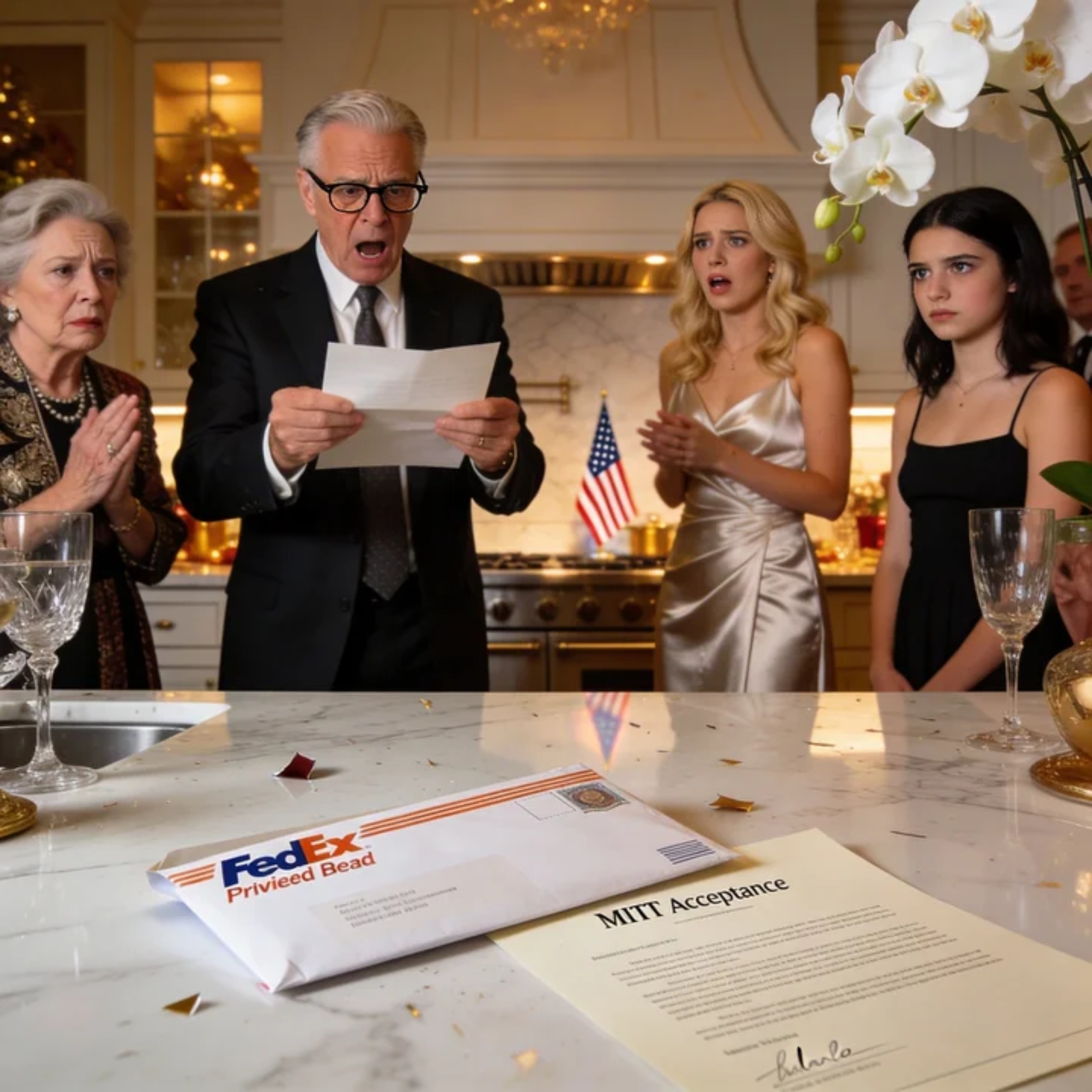 The FedEx envelope hit the marble kitchen island like a gunshot, splitting my father’s birthday party in half.