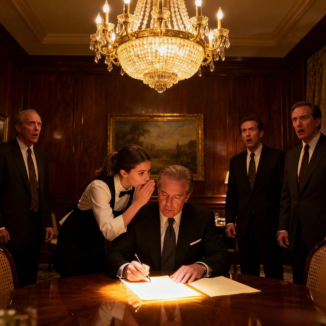 By the time the billionaire’s pen hovered over the signature line, my hands were shaking so hard the wine on my tray looked like a red earthquake.