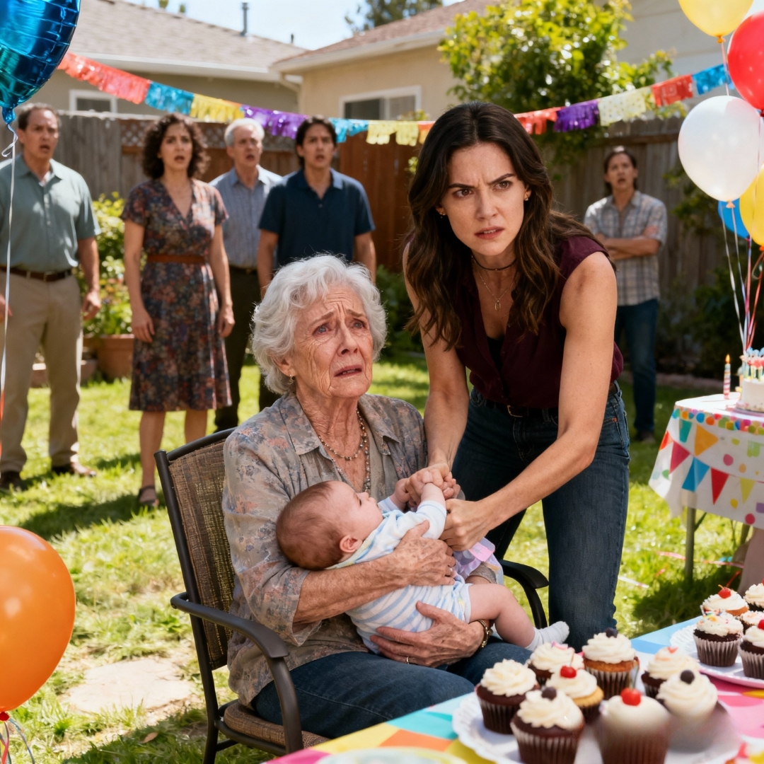She didn’t bend down. She didn’t smile for the camera. She didn’t do the normal mother-at-a-birthday-party things. She just reached out, fingers tight, and pulled my grandson out of my arms in one rough, practiced motion.