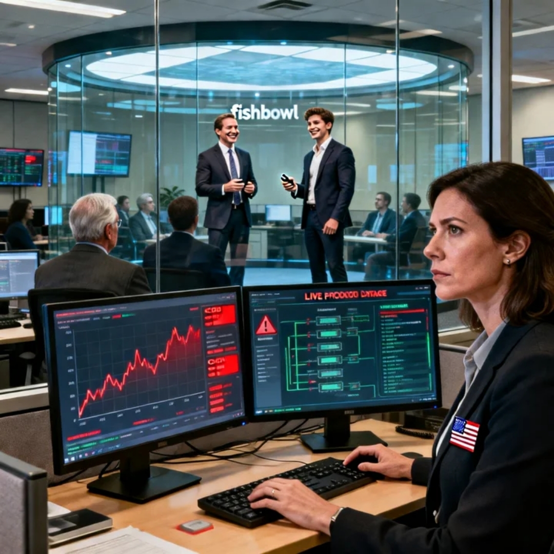 The demo room—glass-walled fishbowl in the center of the office—looked like a tech TED stage. Rows of chairs. Massive screen. Podium. Forced excitement. Everyone smiling while subtly checking exits.