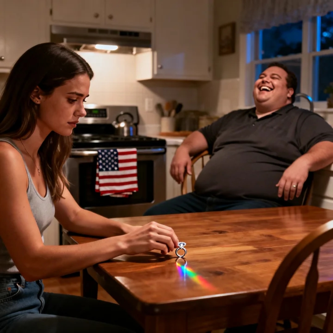 The diamond caught the kitchen light and threw little rainbows onto the hardwood floor—bright, cheerful sparks that didn’t match the way my stomach went cold.