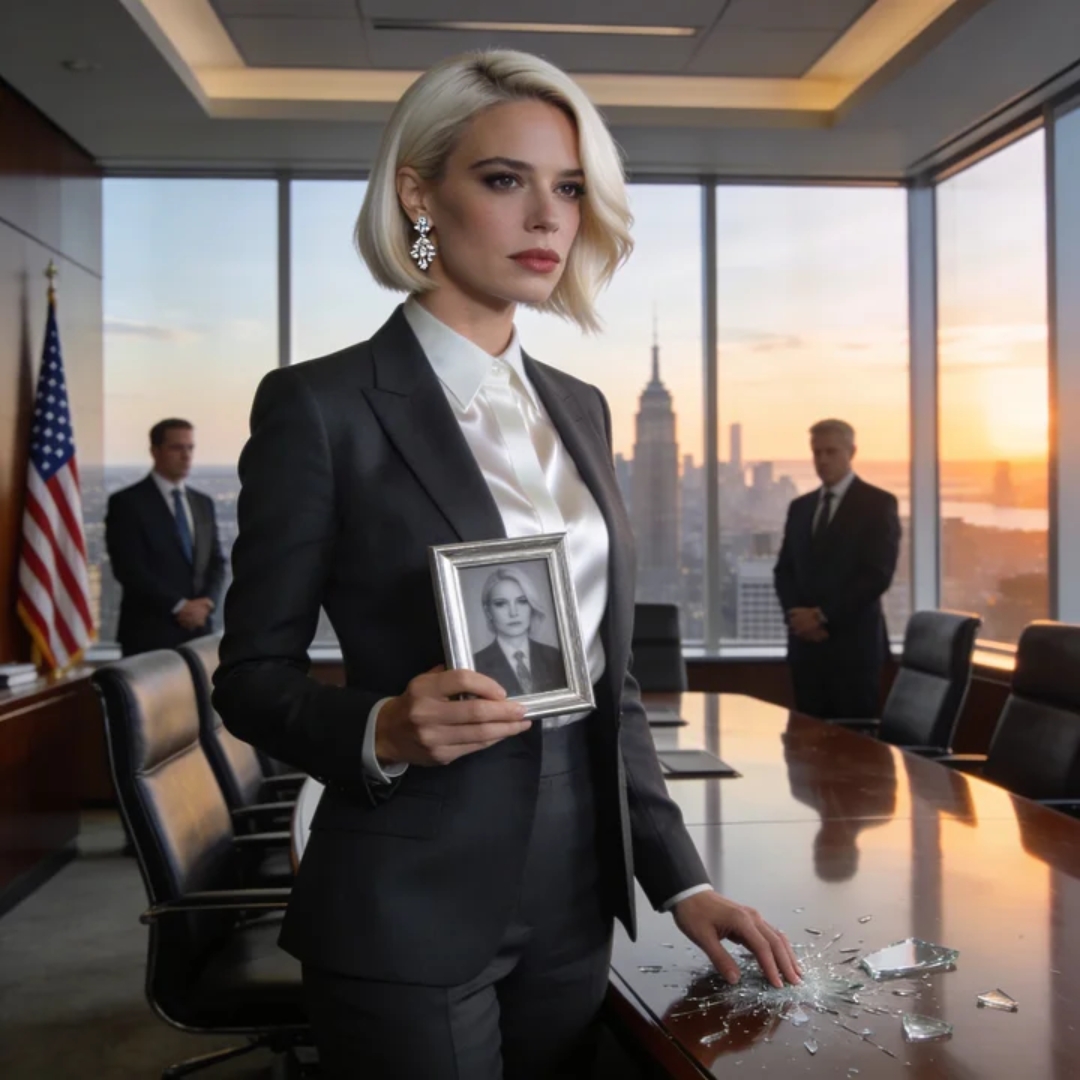 For one sharp, impossible second, the whole boardroom seemed to ring with it—that ugly little burst of breaking glass, the sound of a man’s face in a silver frame bouncing off steel less than twenty-four hours after his funeral. My father’s smile flashed once beneath the fluorescent lights, then disappeared into the can among coffee cups, legal pads, and the ruins of a meeting that had never been a meeting at all.