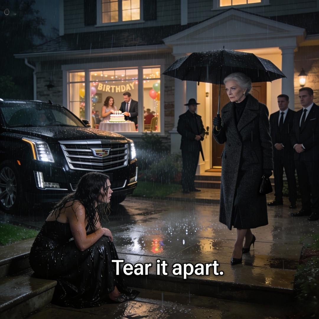 The men in suits escorted them out, not violently, but with absolute finality. The rain outside had turned colder. A gust of wind slammed into them as they crossed the threshold. Lorraine shrieked as her designer heels slid on the wet concrete. Evan grabbed at the doorframe, looking past my grandmother, past the men, to me.
