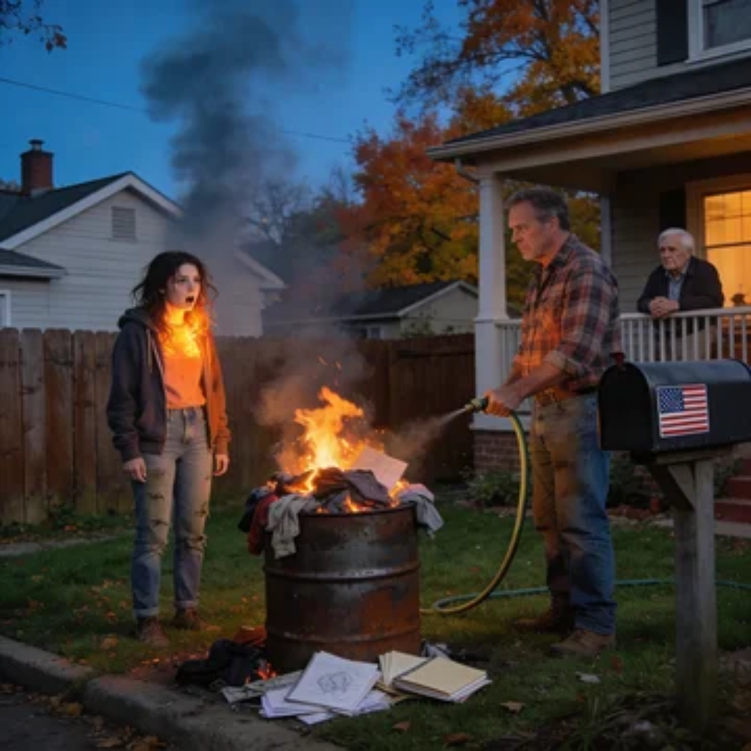 I was seventeen years old, standing barefoot on the cold October grass in Dayton, Ohio, watching my life burn inside an old steel barrel in my father’s backyard. My clothes curled into ash. My sketchbooks blackened and folded. The quilt my grandmother had sewn by hand over three winters—patch by patch, thread by thread—disappeared in less than four minutes.