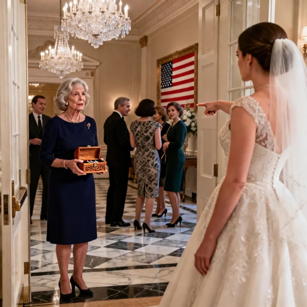 I was standing on a marble floor so polished it reflected the chandeliers like a second sky. Brookfield Country Club—somewhere outside Boston, where the air smelled like peonies, money, and rules you were expected to know without being told. My hands were damp around the small wrapped box I’d carried all the way from Hartford, Connecticut, in my twelve-year-old Honda that still made a little whine when the heat kicked on.
