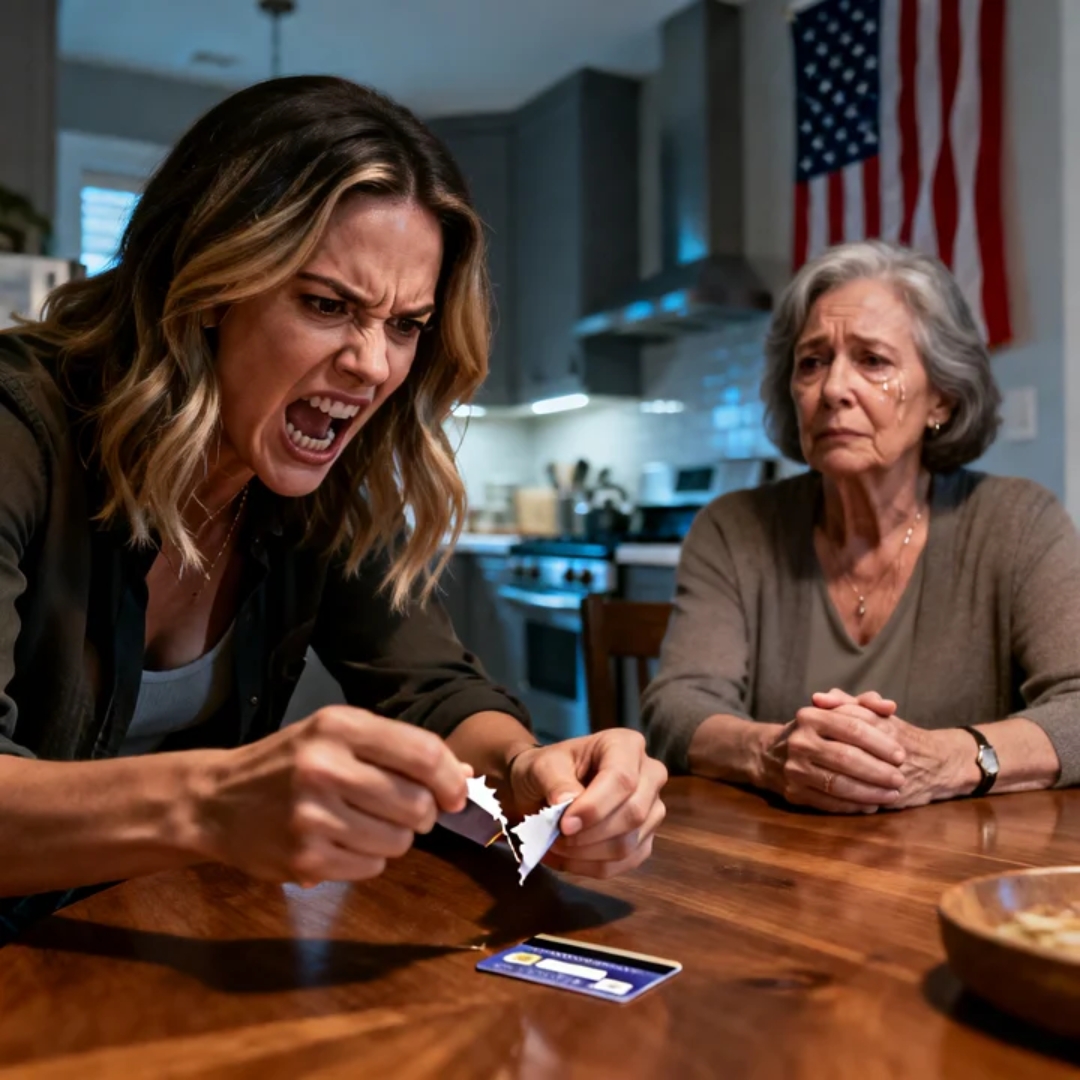 Amanda stood in my kitchen like a headline in a supermarket checkout aisle: expensive hair, perfect lashes, fury sharpened to a point. She ripped my credit card in half with a practiced cruelty, then slapped the two jagged pieces onto the oak table I’d refinished myself back when she still asked me to braid her hair.