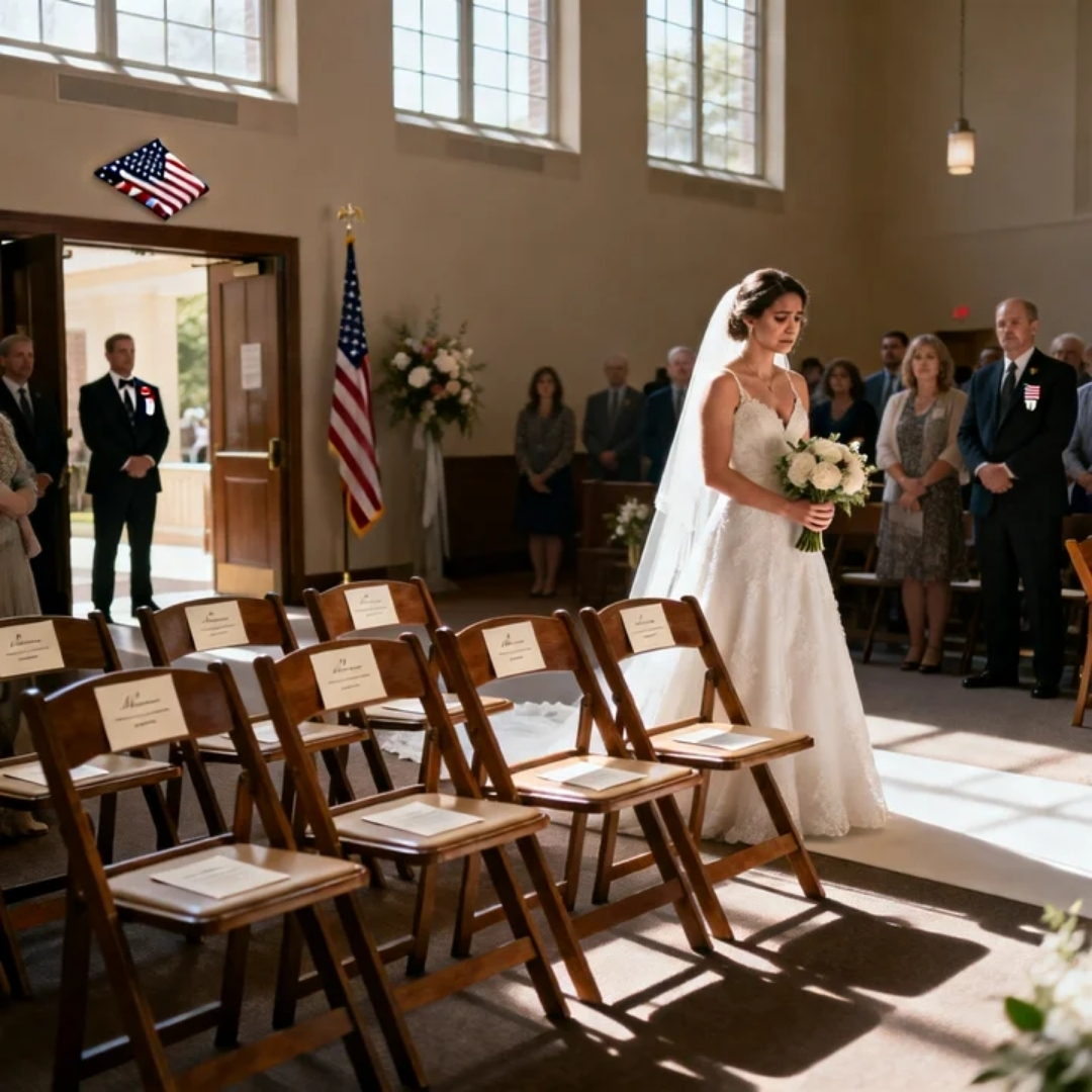 Eight chairs sat in the front row like teeth—white name cards clipped to the backs, ribbons perfectly tied, not one crease out of place—while my bouquet trembled in my hands and my throat burned with words I refused to give the room.