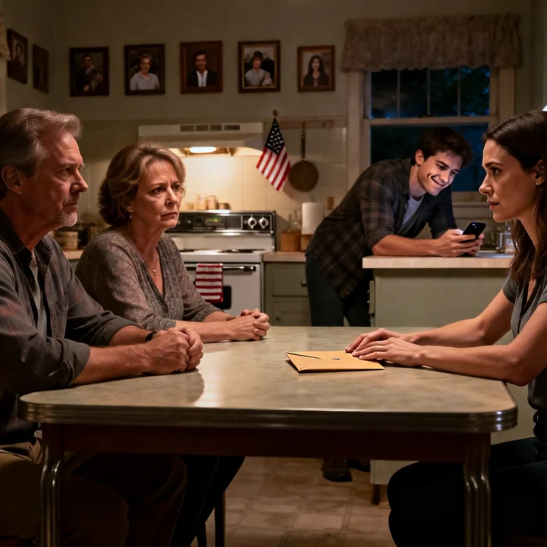 My dad was seated at the kitchen table when I walked in. Jake leaned against the counter, scrolling on his phone, barely pretending to care.