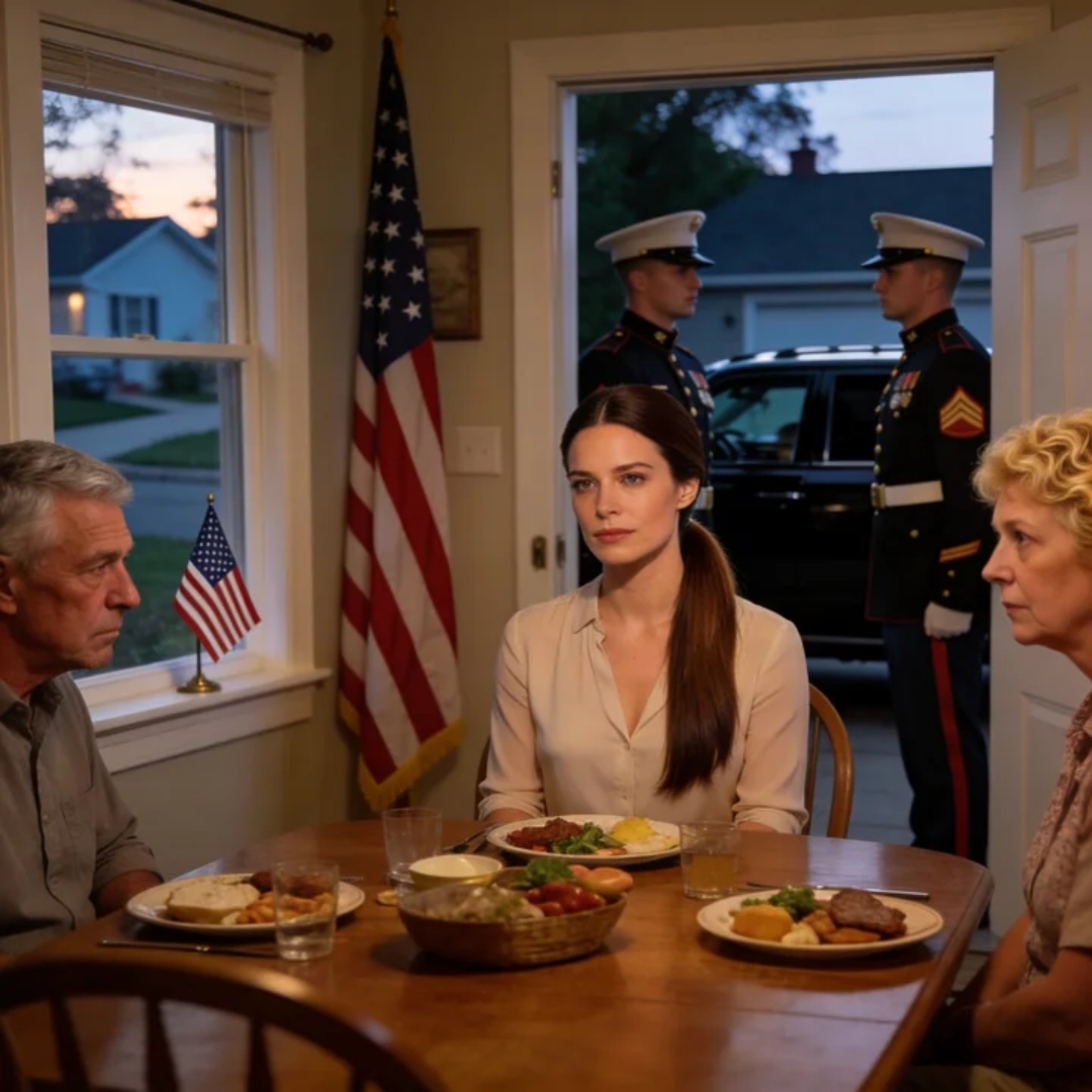 Not my father’s voice. Not my mother’s face. Not the Sunday roast going cold beneath the dining-room light in a split-level house outside Columbus, Ohio. Just that sound—clean, metallic, final—as if the truth had entered the room without knocking and everyone at the table knew, in the same stunned instant, that nothing would look quite the same again.
