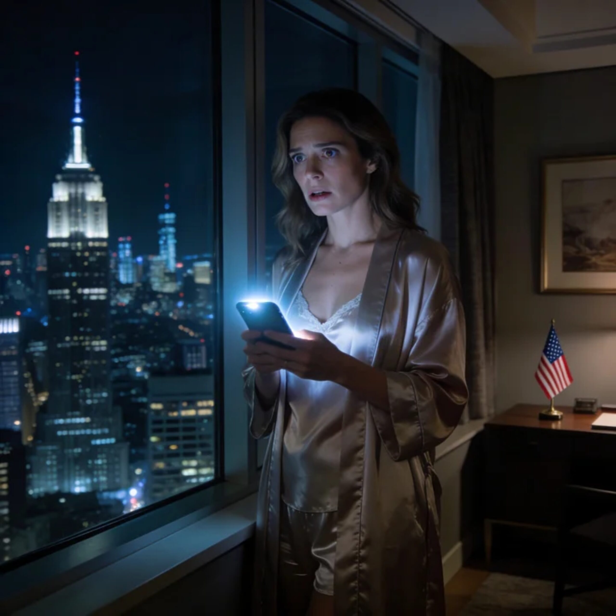 I got out of bed and walked barefoot to the window. Outside, Manhattan was still awake in the distance, all steel-blue towers and sleepless light. My reflection in the glass looked older than I felt and far calmer than I was.