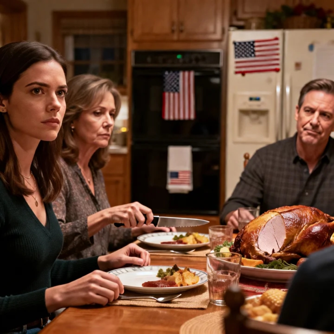 The carving knife made a soft, wet sound as it dragged through turkey skin, and my mother didn’t even look up when she delivered the sentence that rearranged my entire life.