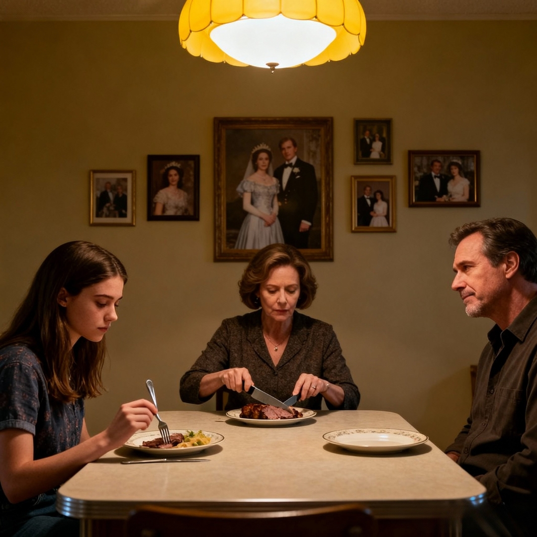 “Your sister’s family will always come first,” she said, knife sliding clean through crispy skin. “You are always last.”