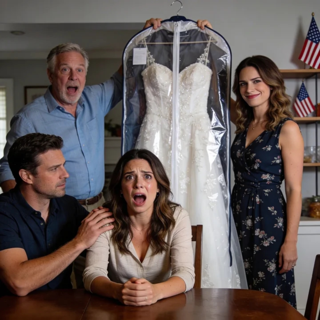 Not just lace—miles of it. Ivory silk, delicate embroidery, the kind of extravagant bridal fabric that belonged in the window of a Fifth Avenue boutique or under the chandeliers of a luxury wedding venue in Napa Valley. My mother lifted it like it was a crown jewel, her eyes glowing with satisfaction.