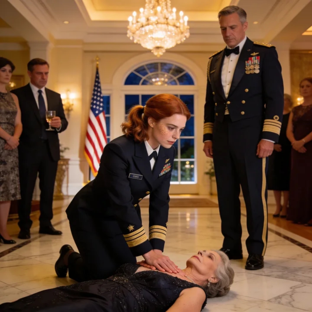 The woman was in her late sixties, maybe early seventies, elegant even on the floor, silver hair perfectly set, pearl necklace twisted at her throat. Someone had tugged at her collar in panic, but no one had done anything useful yet. That’s the thing about emergencies in rooms like that—money, influence, tailored suits, polished shoes, none of it matters when a body stops cooperating. Most people go soft with shock. They look around for someone else to become competent first.
