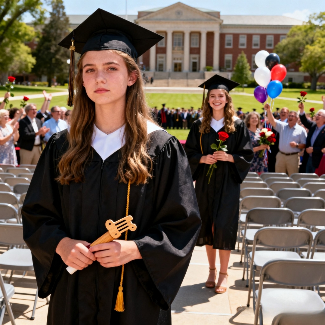 “Smile,” my mom whispered, phone held high, voice sugary and sharp at the same time, as if the right expression could make the story true. She was filming Sienna—my sister—like Sienna had invented sunlight. My dad stood beside her, chest puffed, eyes shining, holding a second bouquet and a gift bag that looked suspiciously expensive. The crowd cheered. Someone yelled, “Congratulations!” Balloons bobbed like bright, careless planets above the bleachers. It smelled like sunscreen, fresh-cut grass, and those little bottled waters families pass around like communion.