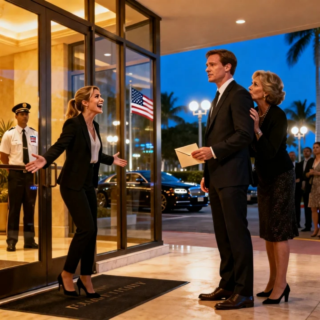 Her laugh rang out loud enough for the valet line to hear. Loud enough for the couple climbing out of a black SUV to pause. Loud enough for the concierge to look up, uncertain, the way people look when money is in the room and the rules suddenly feel unclear.