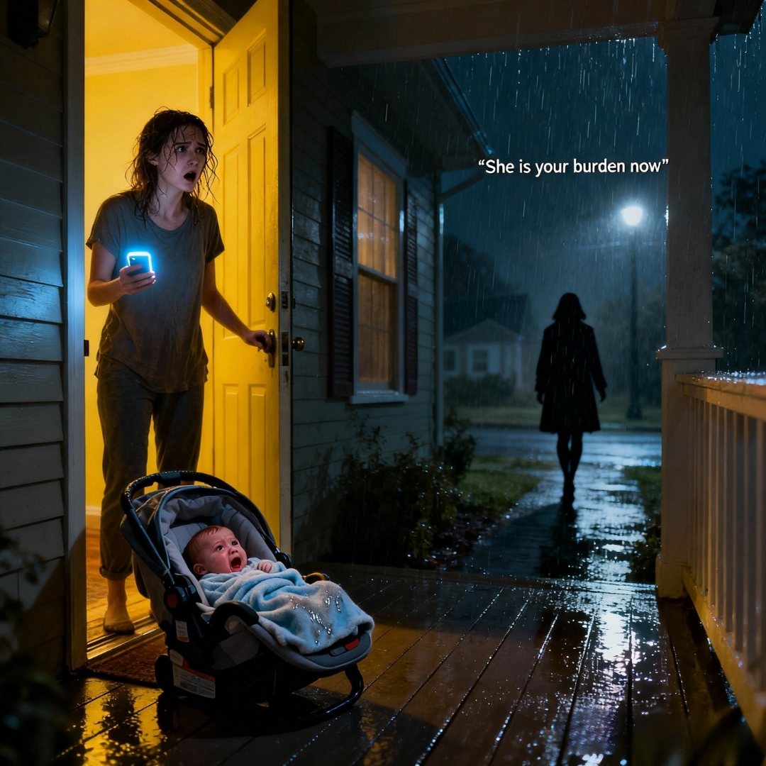 Lily stirred in the car seat, letting out a thin wail, confused by the voices, the light, the storm.